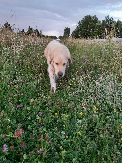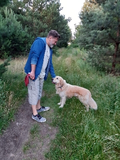 Myślimy o szkoleniu. Na razie dajemy radę. Mam wrażenie, że gdy Heros nie jest na smyczy i niechcący natknęliśmy się się na inne psy, reakcja była o wiele spokojniejsza. Kiedyś przyleciały do nas dwa okrutnie wymorusane goldeny bez smyczy i Herosik biegał z nimi i chyba był trochę zadziwiony, że ma takich samych kumpli jak on. Bardzo źle reaguje na psa znajomych. Psiak dużą część życia spędził w schronisku i od razu rzuca się na inne psy.