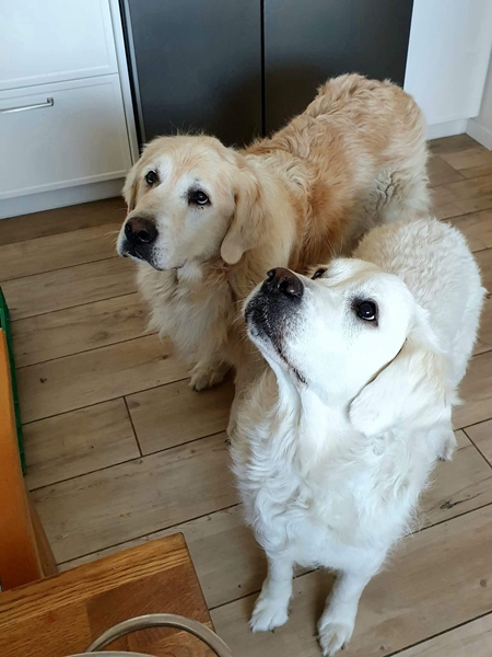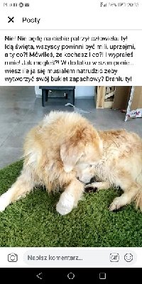 "Spajo jak na dwunastolatka miewa się dobrze. Czasem dupka już robi się ciężka, ale w tym wieku to normalne. Półtora roku temu dołączyła do nas goldenka z prywatnej adopcji."