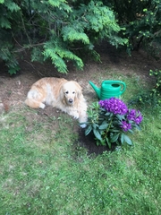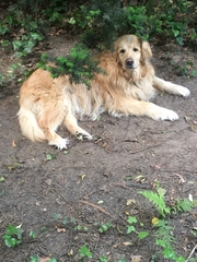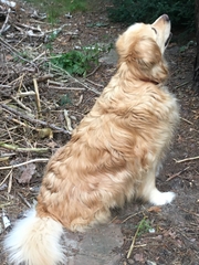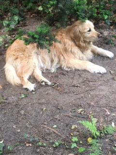 Ari wygląda przepięknie. Trochę przytył ale sierść ma piękną, trochę seterowatą o fantastycznym złocistym kolorze.