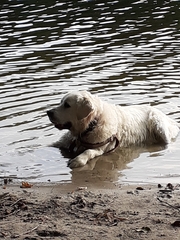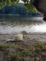 Chodzimy na spacerki już bez smyczy a nad wodą którą mamy niedaleko domku Szami jest jak w raju 😁