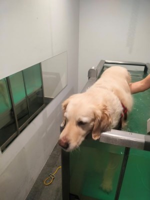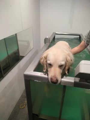 Nasz Trójłapek dzielnie maszeruje w bieżni wodnej.