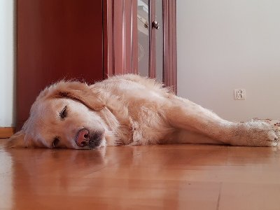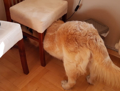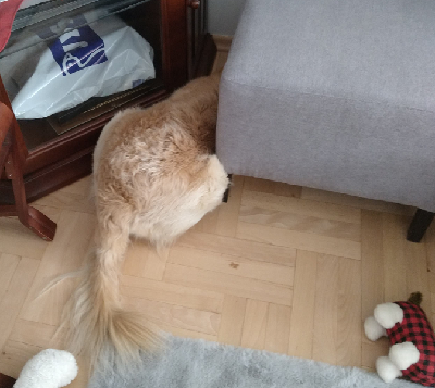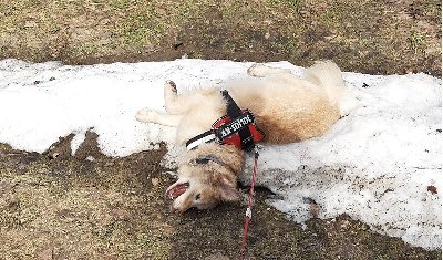 Niestety Sabka nie przyzwyczaiła się jeszcze do czasu letniego i ostatnio często nas budzi nawet przed 6:00. Saba bardzo się cieszy jak tylko wychodzi na zewnątrz, czuje wiatr we włosach, promienie słońca na pyszczku i chce hasać w nieskończoność :lol: Niestety ze względu na obecną sytuację musimy ograniczyć naszą aktywność spacerową, staramy się ją jakoś angażować w domu w zabawy węchowe i kulę smakulę, na której punkcie oszalała.