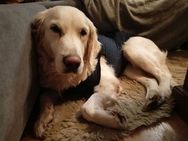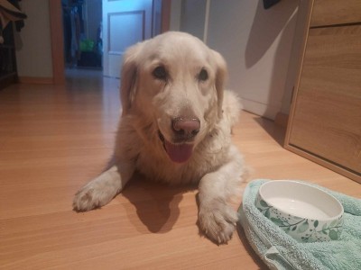 Nabi ma łatkę psa z uczuleniem pokarmowym, zdążyła mieć dwa razy porządne hot spoty ale trudno tez określić czy to z powodu niewyschniętego futra czy z powodu alergii. Z weterynarzami był priorytet żeby odbudować jej florę bakteryjną bo to było w nienajlepszej kondycji oraz żeby