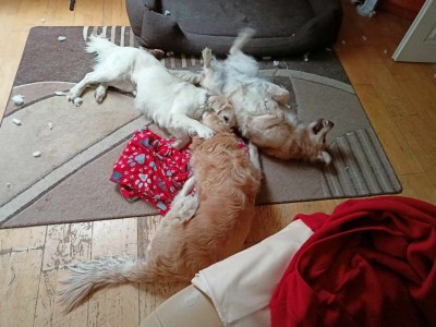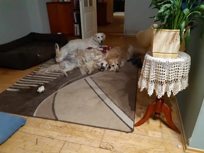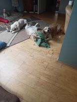 W psim towarzystwie czuje się bardzo dobrze, obce psy traktuje neutralnie ignoruje je albo zachęca do wspólnego spaceru. Raczej woli nie wchodzić w aktywne bieganie z obcymi psami ale dobrze znajduje się w stadzie. Nauczyła się fajnie bawić z Luną i Szelmą, mają swoje codzienne szarpanie kocysia czy znalezionego kapcia. W załączniku przesyłam kilka zdjęć.