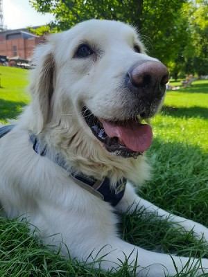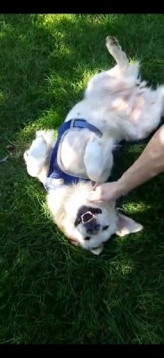 Na spacerach jej zachowanie jest różne. Jednego dnia jest zrelaksowana i potrafi nawet pogonić ptaki czy turlać się beztrosko po trawie, innego przytłacza ją otoczenie, więc na wszelki wypadek kładzie się na chodniku i odmawia dalszej współpracy w celu dojścia do domu.