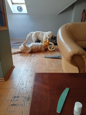 Nabi jest wulkanem pełnym energii. Potrafi pokonać schody w dwóch susach i coraz częściej bawi się z towarzyszącymi jej suczkami, bez potrzeby bronienia zasobu. Szczególnie Szelma potrafi ją zaprosić do wspólnego przeciągania koca lub pokazywania kto szerzej otworzy szczękę;)