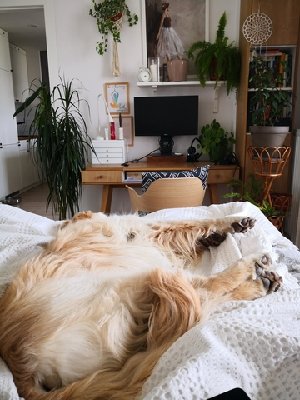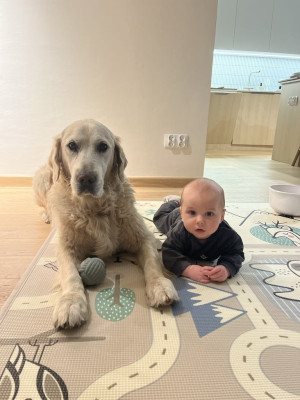 Ogólnie myliśmy nad adopcja 2 Goldena, ale to tak w okolicach zimy, żeby już Dzieciaczek się zaaklimatyzował. Przeprowadziliśmy się tez teraz do domu wiec Muffin szczęśliwy bo ma więcej miejsca.