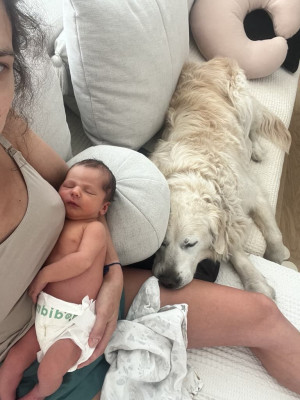 Muffin dobrze się trzyma! Ze zdrowiem ok, poza tematami o których pisalam rok temu- stawy i dysplazja, ale mamy to pod kontrola (suple, masaze). Nowego członka rodziny przyjął cudownie, jest tolerancyjny i cały czas nam towarzyszy. Widac ze troche to odczul psychicznie tylko- bo jednak mniej uwagi mu poswiecamy. Ale staramy sie jak mozemy!