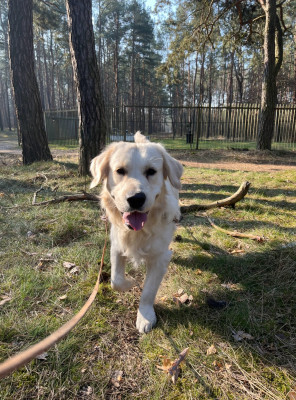 Początek spaceru to chaos – nie słyszy opiekunów, biega w różne strony, ale potem zaczyna się na nich orientować. Spacery to głównie las i dużo węszenia, więc mamy nadzieję, że to pomoże mu uspokoić emocje i dobrze poczuć się w nowym miejscu. Ogólnie, jest bardzo pobudliwy, łatwo się ekscytuje i nakręca – między innymi jest bardzo zainteresowany biegaczami, rowerzystami i psami – patrzy, chce biec, ale nie wykazuje agresji, raczej to typowe młodzieńcze "nieogarnięcie". Na ten moment opiekunowie starają się unikać konfrontacji z innymi psami, przechodząc bokiem lub łukiem, by nie dorzucać do przeprowadzki dodatkowych trudnych przeżyć.