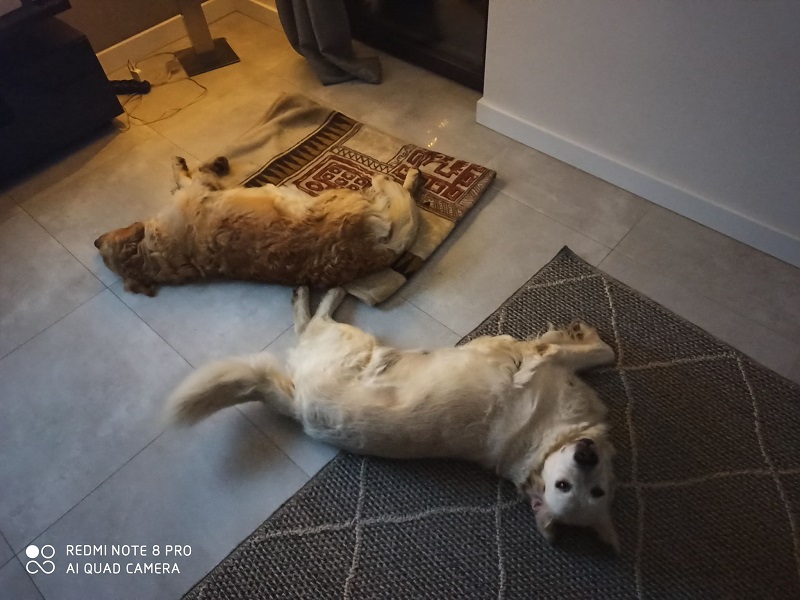 Pierwszą noc w domu spędziła w przedpokoju, spała tuż przy wejściu do sypialni i obserwowała nas. Bałam się czy nasz psiak adopciak - Nef ją zaakceptuje. Jest strasznym zazdrośnikiem, ale mimo początkowej niechęci (oczywiście jednostronnej) są teraz stadem