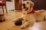 Za to Nelka pożycza mu swoją fundacyjną, czerwoną chustkę. Nie puszczam jej wolno, a przypięta smycz zsuwa chustkę i jest niewygodnie. Może i Nef nie jest Goldenem, ale na pewno chciałby być i godnie reprezentuje fundację Czasami nawet na spacerach ludzie zaczepiają nas i pytają skąd taką mamy Wtedy opowiadam im caaaałą historię i zachęcam do zapoznania się z Wartą Goldena