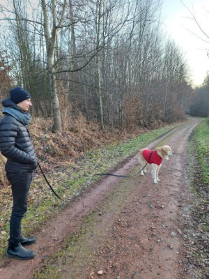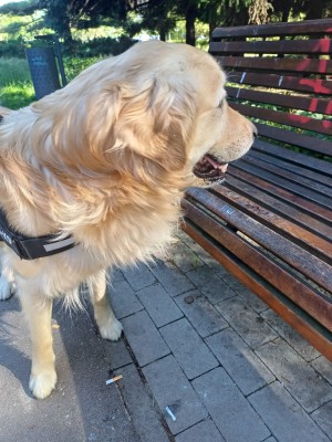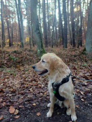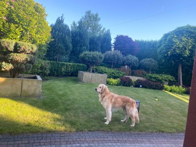 Nasz chłopak świetnie czuje się ze swoimi opiekunami, zachowuje się coraz swobodniej a nawet pozwala sobie na żebranie przy stole, na co absolutnie mu się nie pozwala. Oboje starają się odsyłać go na miejsce i zachęcają do odpoczynku lub aktywności związanej z węszeniem.
