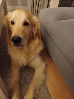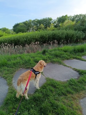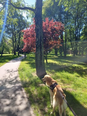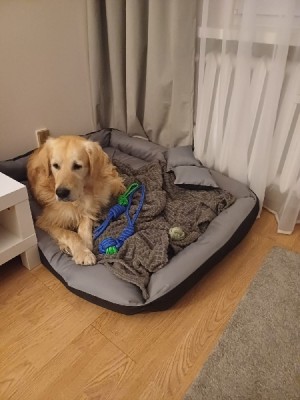 Jedyny problem obecnie ma z zostawianiem samodzielnie w domu, ale na razie obserwują czy to głębszy problem czy efekt jednak ciągle wczesnego okresu pobytu w nowym domu.