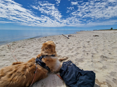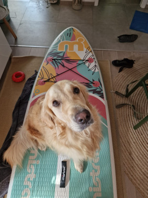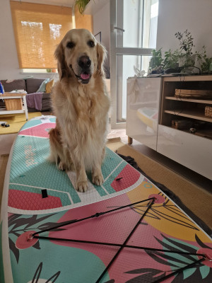 Możemy dowiedzieć sie miedzy innymi tego, ze Imbir był na wakacjach nad morzem, zaprzyjaźnił się z wodą, a nawet chyba SUP pójdzie w ruch. Póki co lekcje "na sucho"