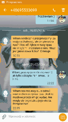 Od kiedy wróciłam dzwonilam do pani Alicji, która jest właścicielką Bongo (potwierdzone również przez trzecia siostrę - Elżbietę), jednak nie udało mi się z nią połączyć. Napisała tylko sms, który dołączam niżej. Od razu po dostanym smsie zadzwoniłam, bo myslalam ze odbierze. Jednak tylko cisza w słuchawce. Może nie odebrała, bo ma małe dzieci i nie chciała ich budzić, a godzina jest w końcu dość pozna.
