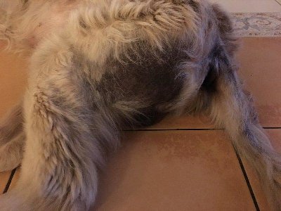 wymaga teraz specjalistycznej diagnostyki skóry, ponieważ ma niepokojące ubytki w sierści -
