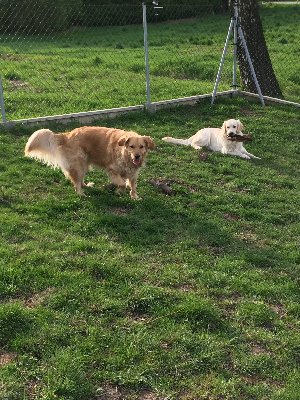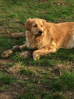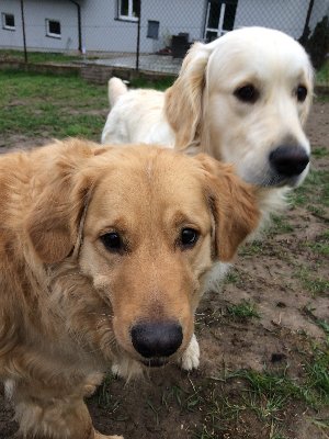 Witajcie kochani, pewnie nie możecie się doczekać wiadomości o tym przystojniaku. No cóż, Aston to prawdziwy Golden :) Jest bardzo towarzyski, przyjazny i posłuszny. Noc faktycznie minęła trochę nerwowo, ale nie można się chłopakowi dziwić. W każdym razie dzisiaj już buszuje po ogrodzie, jakby był u siebie :) i wynajduje zabawki, które znów pojawiają się po zimie, a których Perro jeszcze nie wykopał ;) Aston uwielbia jeść...też mi nowość u Goldena :) Rzeczywiście ma kilka kilogramów za dużo, ale to jest do zrzucenia. Uwielbia się bawić i biegać, ale trochę brakuje mu kondycji. Ładnie słucha poleceń i jest prawdziwym miziakiem, który kocha się przytulać na kanapie :)