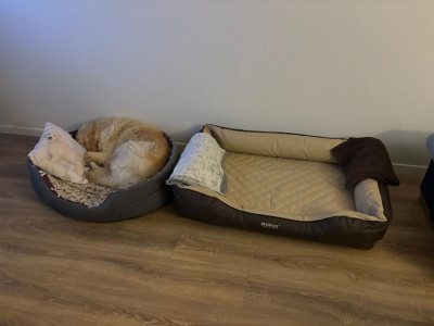 Mika rzadko odpoczywa na swoim legowisku, być może przez to, że jest ono okrągłe i uniemożliwia przybranie komfortowej pozycji. Opiekunowie zakupili nowe, ortopedyczne, prostokątne legowisko i mamy nadzieję, że Mika będzie chętnie w nim odpoczywać. Dowiemy się jak będzie już w użyciu :mrgreen:
