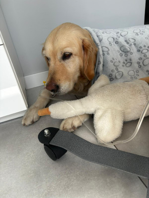 Nikola wyczuła niewielki guzek po prawej stronie w okolicy mostka, bliżej prawego łokcia. Weterynarz na ten moment nie jest w stanie stwierdzić co to dokładnie jest, więc guzek będzie dalej diagnozowany przy okazji zabiegu stomatologicznego.