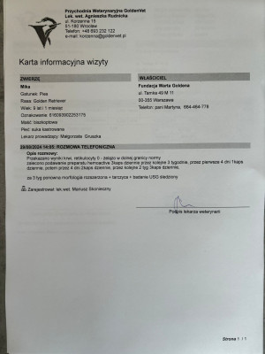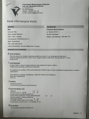 Przed Miką jeszcze conajmniej kilka wizyt u weterynarza w najbliższym czasie, będę informować na bieżąco.