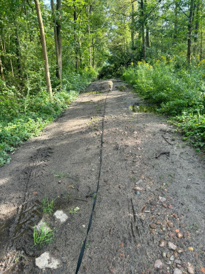 Opiekunowie zakupili długą linkę, aby zapewnić Mice więcej luzu na spacerach. Ćwiczą z nią przywołanie oraz skupienie na opiekunie. Mika jest bardzo zmotywowana, jeśli tylko w grę wchodzą smakołyki :roll: Nad tym nadal trzeba popracować ;-)