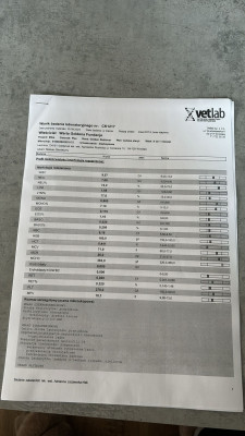 Mika miała wykonane badania krwi, które nie wykazały niepokojących odchyleń. Jedynie parametr tarczycowy wyszedł poniżej normy, wiec do suplementacji Mika dostała Vetfood Thyroforce i przyjmuje 3 kapsułki dziennie.