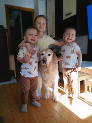 Marley ma się całkiem dobrze. Jeżeli chodzi o zdrowie to ma lekkie problemy z tarczyca, ale kontrolujemy to. Charakter mu się nie zmienił, jak to każdy szanujący się golden ma w życiu jedna świętość-jedzenie 🤣. Daliśmy mu szanse stać się prawdziwym rodzinnym psem, w tym roku jego stado powiększyło się o kolejnych dwóch członków. Jako opiekun naszych dzieci sprawdza się doskonale, oczywiście czerpiąc z tego profity w postaci jedzenia 😊 niebawem czeka nas przeprowadzka wiec swoją psia emeryturę Marley spędzi na wsi, ale z trójka maluchów raczej spokojna ona nie będzie
