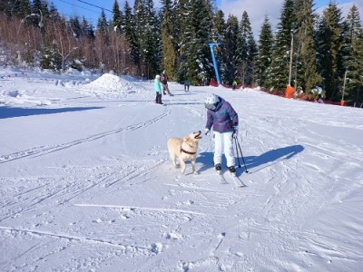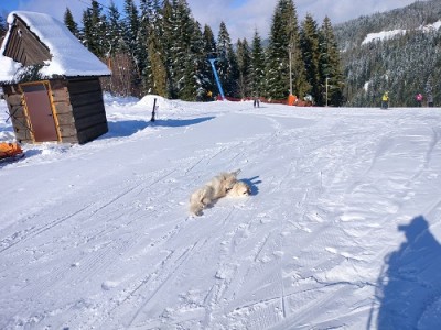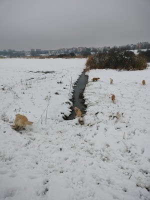 Z każdym dniem coraz bardziej przekonujemy się, że Garret to fantastyczny pies i pasuje do naszej ekipy jak ulał . Zadomowił się już na całego. Na spacerach jest posłuszny przybiega na zawołanie nie oddala się za daleko i kontroluje gdzie jest jego "stado". Czas sylwestrowy (dwa dni przed i po) bardzo był stresujący dla psiaka. Okazało się że bardzo boi się wystrzałów. Sylwestra spędził pod prysznicem odmawiając wyjścia za potrzebą przez 13 godzin. Ale nadrobiliśmy to w następnych dniach długimi spacerami po świeżym śniegu i bieganiem za sankmi. Bardzo podoba mu się ściganie z saneczkami .Teraz niestety znowu przyszła wiosna tej zimy i śnieg stopmiał.