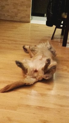 Czesanie ogona i tylnych łap nadal powoduje, że Crazy nie czuje się pewnie. Ale dajemy radę. Nie są to "ataki" wściekłego mordercy, tylko chwycenie za nadgarstek z gestem "hej nie wiem co się dzieje". To nie jest pies, który jest w stanie skrzywdzić, chyba że ktos by się usilnie starał.