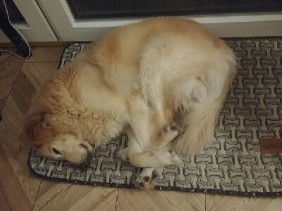 Z pewnością dzięki specjalnej diecie i Waszym dobrym serduszkom Obi czuje się wspaniale. Ale dziś już do Was nie pomacha, bo sporo spacerował w deszczu i zapadł w głęboki sen.