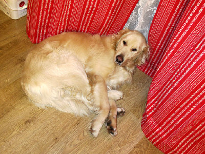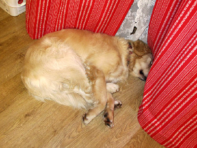 żeby tak już dosycić dzisiejszą wizytę mam jeszcze fajne fotki Taigera, zawsze kiedy widzę jego pozy fascynuje mnie jego uplątanie łap do spania, czy Wasze psy tez tak robią?