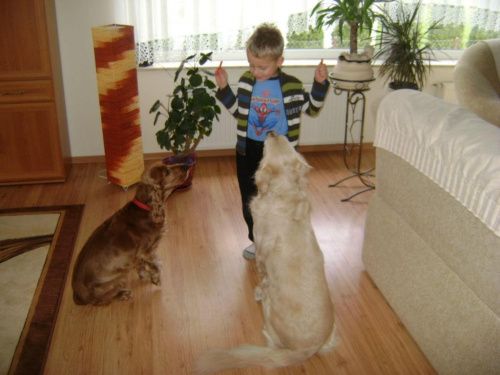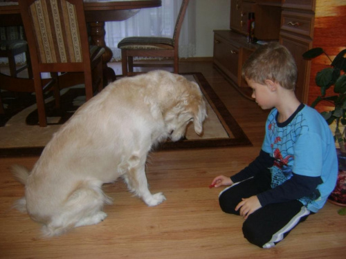 Rzeczywiście, chłopcy potrafią fajnie bawić się z psami. Ich ulubione zajęcie to zabawy węchowe. Szczególnie polecamy chowanie smaczków w różnych zakamarkach domu. Świetna zabawa i frajda dla jak psiaki "zdobywają kolejne bazy". Chanelka doszła już do takiej perfekcji, że znajdzie smaczek ukryty nawet głęboko w szufladzie, Milątko też jest na dobrej drodze .