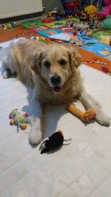 O Pypciu wiele napisać się nie da, bo jest to po prostu Golden z krwi i kości. Uwielbia jeść, jest w kuchni większość czasu tym bardziej, że nasza kuchnia jest otwarta na salon. Uwielbia pieszczoty, wchodzi na kanapę i na łóżko, ale nie śpi na nich. Jest wpatrzony w człowieka, ładnie się słucha, pięknie reaguje na swoje oryginalne imię. Ponoć pływa jak rasowy Golden. Wczoraj wieczorem nie chciał zjeść suchej karmy, ale dziś rano już był na tyle głodny, ze ją zjadł. Nie zamierzamy mu dawać do jedzenia nic innego, bo Pypeć jest gruby jak szafa trzydrzwiowa i koniecznie musi schudnąć, bo na starość mu wysiądą stawy. Zafundujemy mu coraz dłuższe spacery, bo kondycję ma, no i z każdym dniem troszeczkę mniej żarełka. Mam nadzieję, ze nam się uda. Ponoć waży 43 kilo, a ja mam wrażenie jakby ważył 53. Sprawdzimy i to.