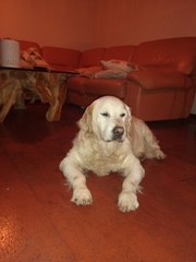 W październiku br minęły 4 lata jak Gajcia pozostała w naszej rodzinie. Miała wówczas 11 lat, zatem obecnie ma 15. To już stateczna starsza Pani. Ma sie całkiem dobrze jak na swój wiek. Dużo śpi, spacery owszem ale już nie tak długie jak wcześniej. Apetycik i owszem. W związku z wiekiem ma problemy ze stawami w tym sensie, że nie może gwałtownie schodzić z legowiska bo się jej łapy rozjeżdżają po podłodze. Zatem z posłania wstaje nieco ociężale mimo że posłanie ma duże i przystosowane. Ma tez problemy z poruszaniem się po schodach, z tym że na szczęście nie musi ich pokonywać bo zamieszkujemy parter i do wyjścia ma zaledwie 2 stopnie.