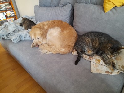 Aga Nova Scotia też jest Twój? Myślałam, że tylko towarzyszy na spacerach bo to jakiś znajomy a tu widzę, że w domu też z Wami, to niezłe stadko retrieverów masz teraz