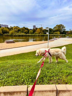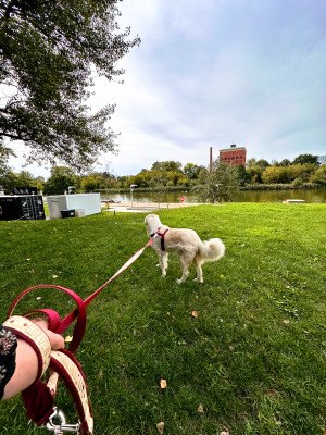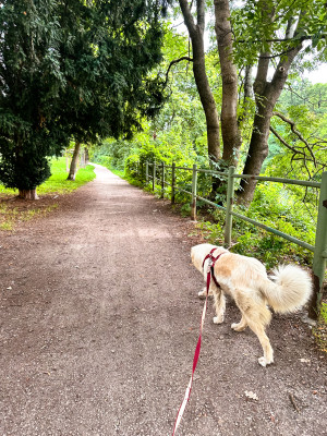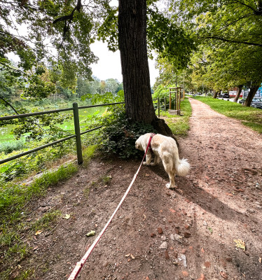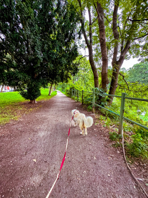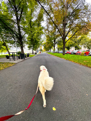Lola szła dzielnie, załatwiła się nawet 2x na spacerze, zapewne też ze stresu, ale Qpa wyszła ładnie 😄