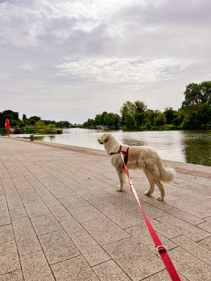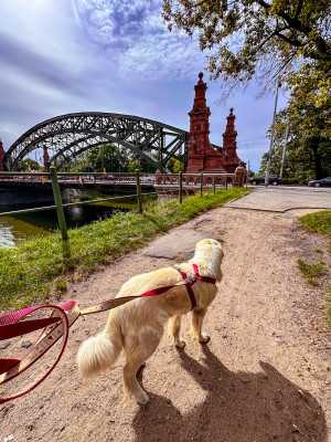To istny pies zagadka. W jednym momencie idzie na smyczy jak na ścięcie, a 2 sekundy później wyprzedza cię w podskokach i wręcz wyrywa smycz z rąk. Fenomen na skalę światową.