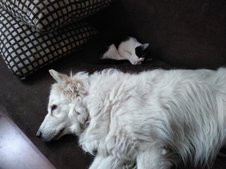 Teraz jest z Szerusiem, co raz bardziej go akceptuje, nawet go szuka jak nie ma go na horyzoncie. To widać że przywykli do siebie. Bałam się o to bo Ona jest bardzo zazdrosna, nie lubi jak choćby głaskam innego psa. Potrafi być nawet agresywna. W ogóle nie akceptuje innych psów. Do Szerusia sie przyzwyczaiła. potrafią razem jeść obok siebie, obje przychodzą sie głaskać. Teraz wiem od czego mam dwie ręce ;-)
