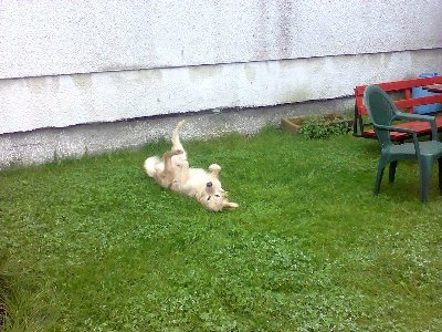 Badi jest bardzo grzeczny, ale jak wychodzimy na działkę to zamienia się w szalonego szczeniaka :0 kula się w trawie bez końca.