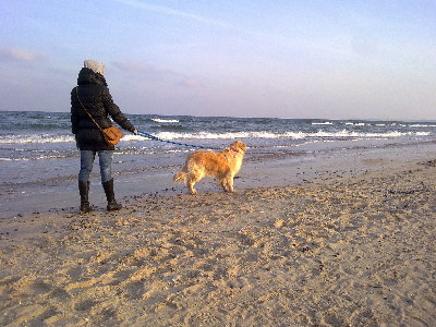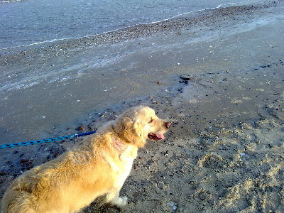 Dziś wybraliśmy się na spacer nad morze, gdzie Jammal po raz pierwszy został spuszczony ze smyczy i ku naszemu zadowoleniu zachowywał się bardzo grzecznie. Musimy go tylko nauczyć aportować, bo z tym ma małe problemy.