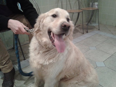 Jammal jest u nas od wczoraj i emocje powoli opadają Pierwszą kąpiel mamy już za sobą! Musieliśmy się nieźle nagimnastykować żeby namówić Jammala do wejścia do wanny ale potem było juz z górki. Pies jest niesamowicie spokojny i ufny! Bardzo szuka towarzystwa i kontaktu i na razie chodzi za nami krok w krok. Bez problemu dogadał się z naszą kotką i mimo swoich rozmiarów nie stara się dominować Jammal niesamowicie ozywia się podczas spacerów i gdyby mógł w ogóle nie wracałby do domu Zaliczyliśmy dzisiaj też pierwszą wizytę u weterynarza i krople na pchełki. Widać że jazda samochodem nie jest dla niego komfortowa ale mimo wszystko Jammal wykazuje się niesamowita cierpliwością i pogodą ducha W poniedziałek kolejna wizyta u weterynarza i badania ogólne, trzymajcie kciuki!