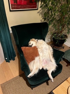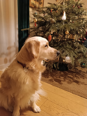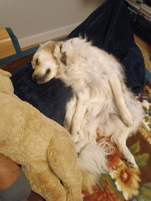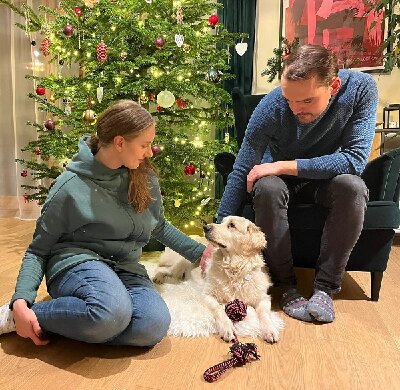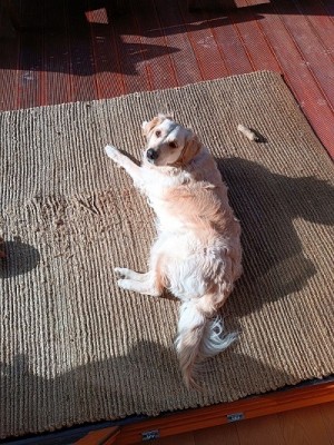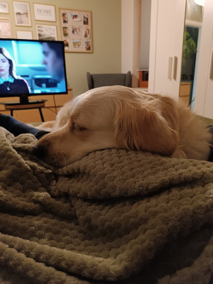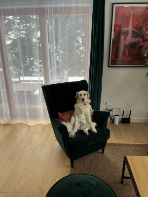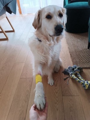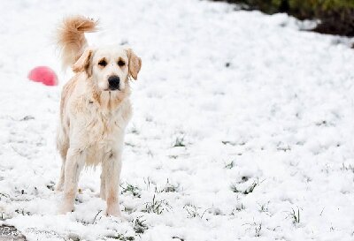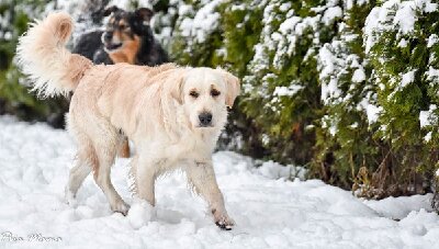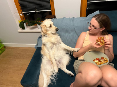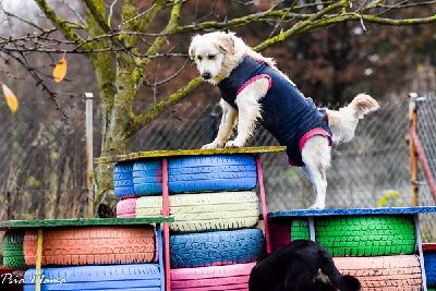 Bella jest jednak bardzo chętna do treningów, ma dużą motywację na jedzenie i bardzo szybko uczy się nowych rzeczy. Jak przystało na przedstawiciela Goldenów - Bella uwielbia zabawy z innymi psami, spacery, węszenie, tarzanie w błocie, wodzie i śniegu