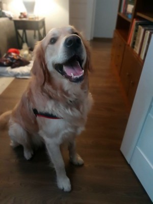Ma psią przyjaciółkę, która mamy nadzieję, nauczy tego młodziaka ogłady. W domu też mieszka kotek, który póki co trzyma się na dystans, ale z czasem wierzymy, że się zakumulują już na zawsze