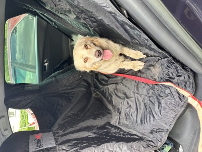 Po wejściu do auta leży spokojnie i nie zmienia pozycji do samego domu.