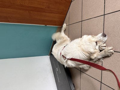 Pani doktor słysząc z gabinetu co się dzieje od razu podała Relanium i Lola uspokoiła się na tyle, abyśmy mogły pomóc jej przejść do gabinetu i się położyć.