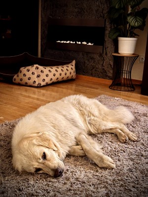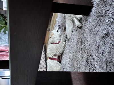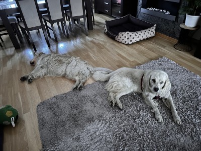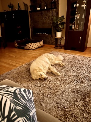 Noc przebiegła spokojnie, spała na swoim ulubionym dywanie w salonie rozciągnięta jak Rosja na mapie :-D