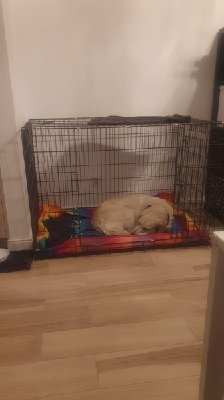 A i widzimy, że Lejdi całkiem swobodnie mieszka sobie w klatce / kennelu. To dobra sprawa kiedy zależy nam na zbudowaniu miejsca w którym pies czuje się dobrze i bezpiecznie. Kennel świetnie się sprawdza w czasie podróży - to pewnik, w którym pies czuje się dobrze, odpoczywa i się regeneruje.