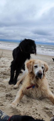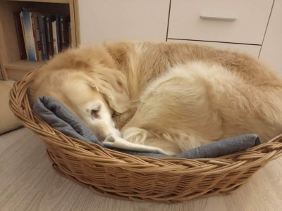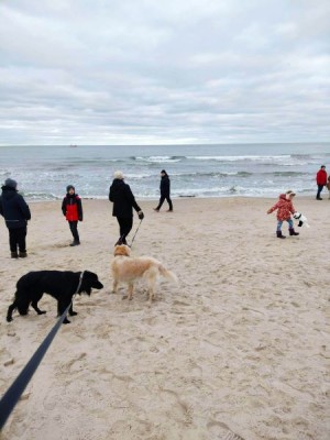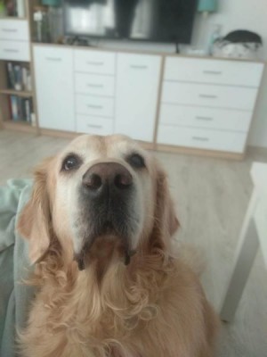 Nestuńcia jest najwspanialszą istotą na świecie jest pełna energii pomimo swoich lat, uwielbia biegać na wsi po lesie, nie przepada za kąpielami w jeziorze co jest dziwne jak na goldena ale za to jest mistrzem kopania dziur. Największa frajda nad morzem gdy Nesti z 3 dzieci kopią doły w piasku😁😁😁Nestunia jak na razie jest zdrowiuteńka, ma tendencję do problemów z pęcherzem moczowym. Dość często ma zapalenia pęcherza na szczęście nie są one mocne