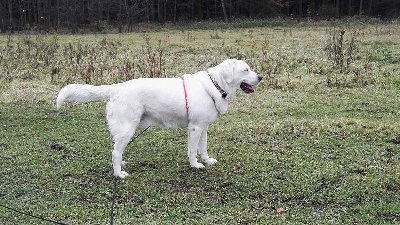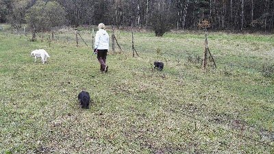Kaja to cudna sunia, spokojna , na spacerach maszeruje dzielnie, na początku troszkę ciągnąć, na lince trochę biega, choć specjalnie nie to jest jej celem, trzeba uważać bo bardzo lubi "różne smaczki " znalezione w trawie ,nawet w jednym próbowała się wytarzać ale na szczęście zdążyliśmy .Ujadającymi psiakami za płotem nie jest zainteresowana.