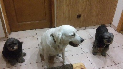 Nasz sunie (Gaja i Lora) nie są zbyt zadowolone z nowego domownika,trochę na Kaję powarkują. Kaja próbuje zachęcić Gaję do zabawy ale chyba jeszcze za wcześnie.